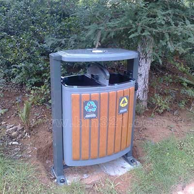 材质: 垃圾桶上盖和主箱体采用电解热镀锌冷板材质,上盖采用整体拉伸成型,上盖底沿口采用内翻边成型工艺,使上盖更加坚固耐用。而且边缘光滑不刮手。桶身表面采用低碳环保纤维塑胶木装饰,内桶采用高强度、阻燃、耐酸碱工业级树脂制作。