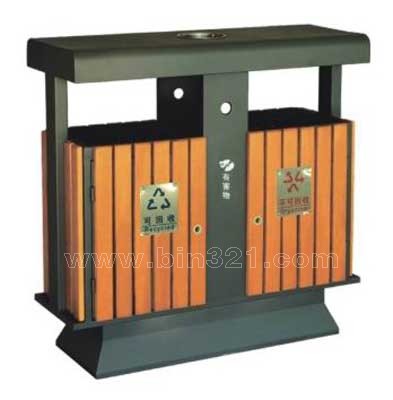 型号:A2206 规格:L970*W380*H950mm 材质:钢木分类垃圾桶。垃圾桶采用钢架结构,表面经过酸洗、去锈、然后采用户外粉末静电喷涂处理。桶身为马来西亚进口山樟木条装饰,表面采用户外聚酯漆或户外水封漆上色涂装。垃圾桶内胆采用镀锌板材质。