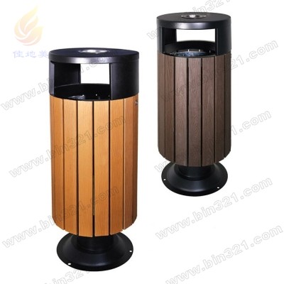 材质:钢架结构,表面经过酸洗、去锈、然后采用户外粉末静电喷涂处理。桶身为低碳环保生态木条装饰,垃圾桶内胆采用镀锌板材质。