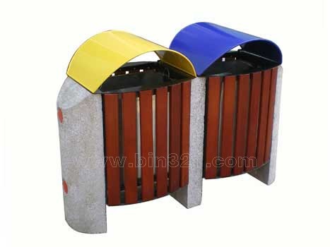 材质:垃圾箱采用钢架结构,表面经过酸洗、去锈、然后采用户外粉末静电喷涂处理。桶身为马来西亚进口山樟木条装饰,表面采用户外聚酯漆或户外水封漆上色涂装。水泥石米椅脚。垃圾桶内胆采用镀锌板材质。