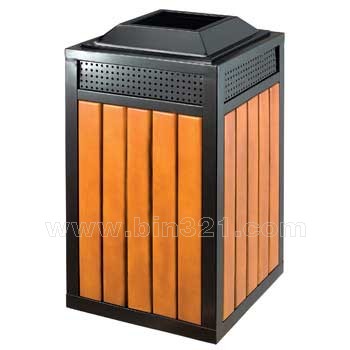型号:A2120 规格:L450*W450*H800mm 材质:钢木垃圾桶。垃圾桶采用钢架结构,表面经过酸洗、去锈、然后采用户外粉末静电喷涂处理。桶身为马来西亚进口山樟木条装饰,表面采用户外聚酯漆或户外水封漆上色涂装。垃圾桶内胆采用镀锌板材质。