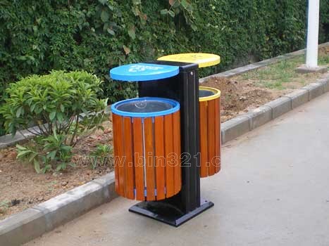 型号:A2251 规格:L820*W400*H950mm 材质:钢木分类垃圾桶。垃圾桶采用钢架结构,表面经过酸洗、去锈、然后采用户外粉末静电喷涂处理。桶身为马来西亚进口山樟木条装饰,表面采用户外聚酯漆或户外水封漆上色涂装。垃圾桶内胆采用镀锌板材质。