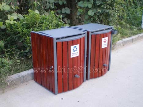 型号:A2151 规格:单桶L600*W550*H805mm 材质:脚踏式钢木垃圾桶。垃圾桶采用钢架结构,表面经过酸洗、去锈、然后采用户外粉末静电喷涂处理。桶身为马来西亚进口山樟木条装饰,表面采用户外聚酯漆或户外水封漆上色涂装。垃圾桶内胆采用镀锌板材质。