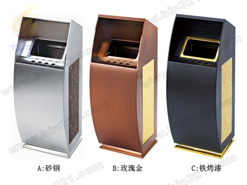 型号:A6503 规格:L260×W280×H750mm 材质:A:采用优质不锈钢材质,侧面为埃及皮纹饰面,垃圾桶内胆采用镀锌板材质。 材质:B:采用优质不锈钢镀玫瑰金材质,侧面为金叶皮纹饰面,垃圾桶内胆采用镀锌板材质。 材质:C:采用优质钢板黑色烤漆材质,金色部份不锈钢镀钛,侧面为金叶皮纹饰面,垃圾桶内胆采用镀锌板材质。