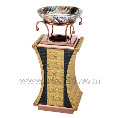 材质:不锈钢镀玫瑰金框架、仿皮面、玻璃盆。