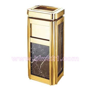 材质:垃圾桶优质不锈钢材质模具制做,金色部份为不锈钢镀钛。天然大理石饰面,上盖带有烟灰盅,镀锌板内胆。
