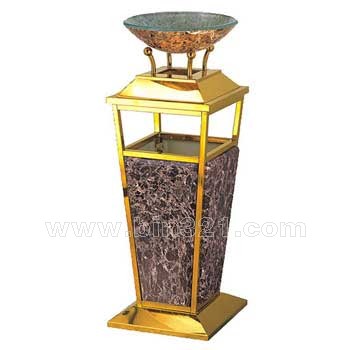 材质:垃圾桶采用优质不锈钢材质模具制做,金色部份为不锈钢镀钛。啡网纹(塑艺)饰面,玻璃盆烟灰盅,镀锌板内胆。