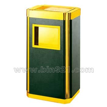材质:垃圾筒采用优质不锈钢材质模具制做,金色部份为不锈钢镀钛。黑色部份为天然大理石饰面,上盖带有烟灰盅,镀锌板内胆。