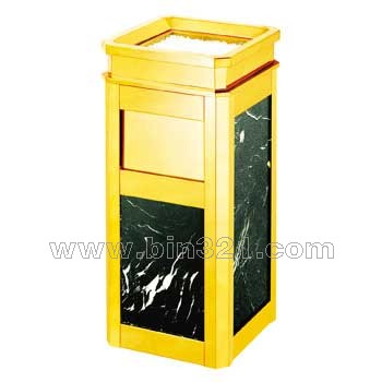 材质:垃圾筒采用优质不锈钢材质模具制做,金色部份为不锈钢镀钛。黑色部份为天然大理石饰面,上盖带有烟灰盅,镀锌板内胆。