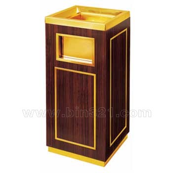 材质:黄色金属部份为优质不锈钢镀钛,桶身为红木饰面,镀锌版内胆。外观精美,高档。适用于酒店、大堂、等室内使用。