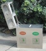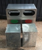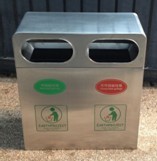 一、垃圾桶材质:外桶采用不锈钢材质,表面拉丝砂纹处理,镀锌板内胆。上盖厚度1.0mm。桶身厚度0.9mm。上盖无烟盅。双边设垃圾投放口。双面设回收标志。 二、垃圾桶型号:A1062 规格:L700*W350*H780mm