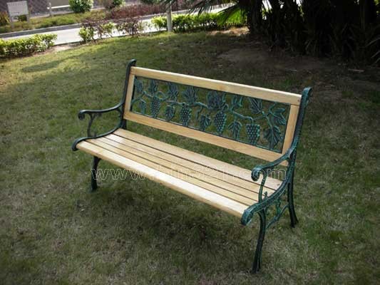 材质:钢木园林椅。铸铁椅脚,杉木椅面。
