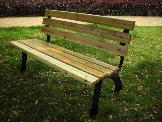 材质:钢木园林椅。铸铁椅脚,杉木椅面。