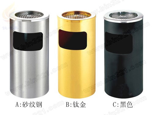 型号:A1155 规格:Φ300*H610mm 材质:A:优质201#不锈钢材质,上盖带有网格烟灰盅,镀锌板内胆。 材质:B:优质201#不锈钢材质,金色为不锈钢表面镀钛,镀锌板内胆。 材质:C:优质钢板烤漆桶身,不锈钢网格烟灰盅,镀锌板内胆。