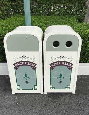 型号:A3073 规格:单桶L500*W450*H950mm 材质:垃圾桶采用优质电解钢板材质,表面经过酸洗、去锈、然后采用户外粉末静电喷涂处理。完全能适应室外各种恶劣环境,耐腐蚀,不易褪色,使用年限长。垃圾桶内胆采用镀锌板材质。