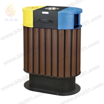 型号:A2223-C 规格:L685*W400*H940mm 材质:全钢结构,桶身为铁烤漆仿木条材质,采用优质钢板经激光切割、焊接,打磨等加工成型;表面经过酸洗、去锈、然后采用户外粉末静电喷涂处理。垃圾桶内胆采用镀锌板材质。