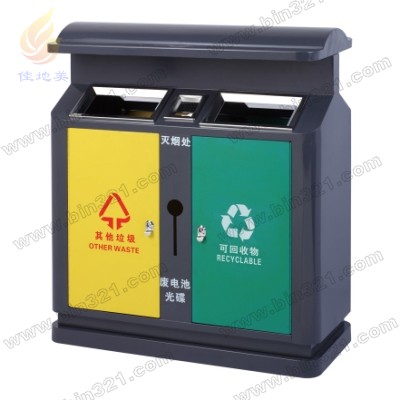 型号:A3389 规格:L850*W400*H1000mm 材质:垃圾桶采用优质钢板材质,表面经过酸洗、去锈、然后采用户外粉末静电喷涂处理。完全能适应室外各种恶劣环境,耐腐蚀,不易褪色,使用年限长。垃圾桶内胆采用镀锌板材质。