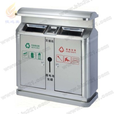 型号:A1046 规格:L850*W400*H1000mm 材质:分类不锈钢垃圾桶,优质201#不锈钢板材质,表面为砂纹不锈钢处理,镀锌板内胆,外观精美、高档、耐用、容量大。
