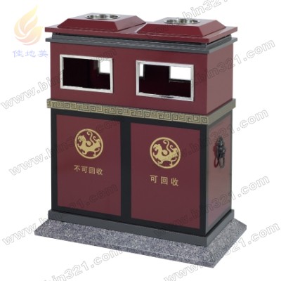 型号:A3403 规格:L850*W460*H1040mm 材质:垃圾桶采用优质钢板材质,表面经过酸洗、去锈、然后采用户外粉末静电喷涂处理。完全能适应室外各种恶劣环境,耐腐蚀,不易褪色,使用年限长。垃圾桶内胆采用镀锌板材质。