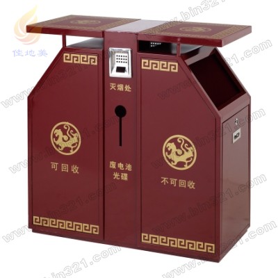 型号:A3399 规格:L850*W400*H900mm 材质:垃圾桶采用优质钢板材质,表面经过酸洗、去锈、然后采用户外粉末静电喷涂处理。完全能适应室外各种恶劣环境,耐腐蚀,不易褪色,使用年限长。垃圾桶内胆采用镀锌板材质。