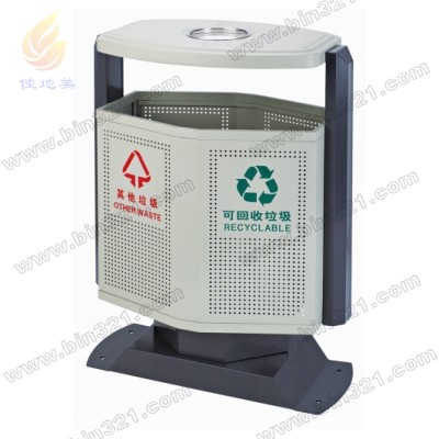 材质:全钢结构,表面经过酸洗、去锈、然后采用户外粉末静电喷涂处理。桶盖为整体拉伸成型,垃圾桶内胆采用镀锌板材质。