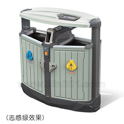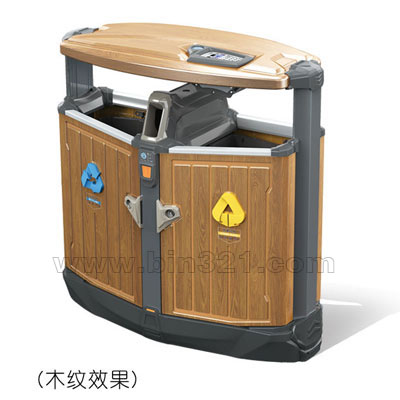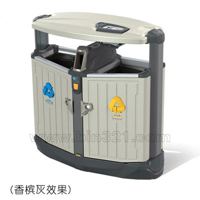 材质: 垃圾桶上盖和主箱体采用镀锌冷板材质,上盖采用整体拉伸成型,上盖底沿口采用内翻边成型工艺,使上盖更加坚固耐用。而且边缘光滑不刮手。灭烟板用不锈钢板一次拉伸成形,下方安装有封闭式铝合金抽拉烟灰盒。果壳箱整体采用户外塑粉静电喷涂。SPP喷印木纹、大理石效果。内桶采用高强度、阻燃、防UV、耐酸碱工业级树脂制作。