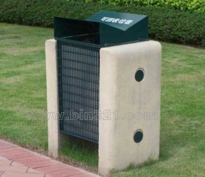 材质:垃圾桶钢架结构,桶身和上盖采用优质钢板,表面经过酸洗、去锈、然后采用户外粉末静电喷涂处理。垃圾桶两侧采用水泥石米材质。垃圾桶内胆采用镀锌板材质。