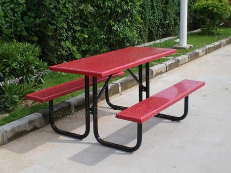 材质:休闲桌椅为全钢结构,椅脚采用优质钢管,椅面采用优质冷轧钢板数控冲孔,休闲桌椅表面经过酸洗、去锈、然后采用户外粉末静电喷涂处理。完全能适应室外各种恶劣环境,使用年限长。烤漆颜色可根据客户要求制作。