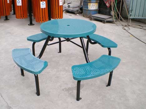 材质:休闲桌椅为全钢结构,椅脚采用优质钢管,椅面采用优质冷轧钢板数控冲孔,休闲桌椅表面经过酸洗、去锈、然后采用户外粉末静电喷涂处理。完全能适应室外各种恶劣环境,使用年限长。烤漆颜色可根据客户要求制作。