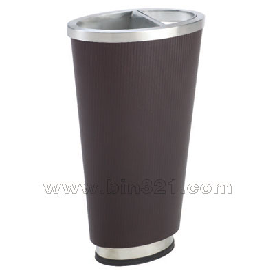 材质:椭圆锥体垃圾桶,优质钢板+皮纹桶身,不锈钢上盖带有烟灰盅,镀锌板内胆。
