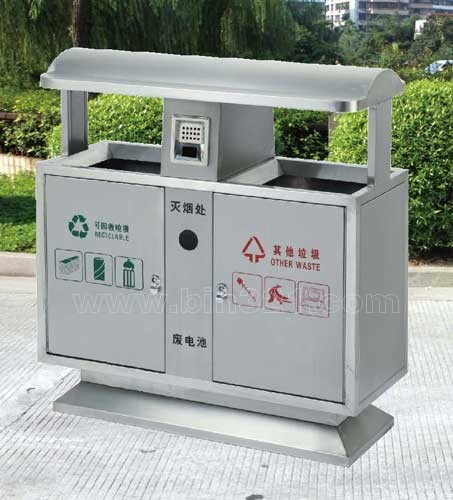 材质:分类不锈钢垃圾桶,优质201#不锈钢板材质,表面为砂纹不锈钢处理,镀锌板内胆,外观精美、高档、耐用、容量大。