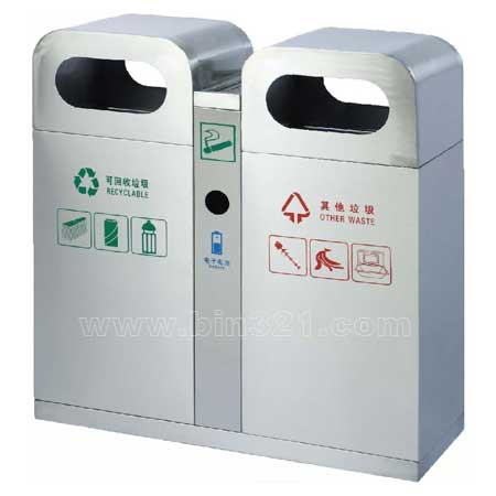 材质:分类不锈钢垃圾桶,优质201#不锈钢板材质,表面为砂纹不锈钢处理,镀锌板内胆,外观精美、高档、耐用、容量大。