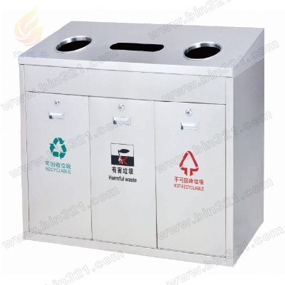 材质:分类不锈钢垃圾桶,优质不锈钢板材质,表面为砂纹拉丝处理,镀锌板内胆,外观精美、高档、耐用、容量大。适合商场、车站、小区、办公场所使用。