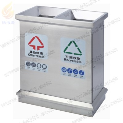 型号:A1075-B 规格:L680*W380*H820mm/2分类 材质:分类不锈钢垃圾桶,优质不锈钢板材质,表面为砂纹不锈钢处理,镀锌板内胆。(可按要求定制201#不锈钢、304#、316#等)。外观精美、高档、耐用、容量大。
