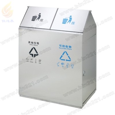 型号:A5015 规格:L660*W400*H890mm/2分类 材质:分类不锈钢垃圾桶,优质不锈钢板材质,表面为砂纹不锈钢处理,镀锌板内胆。(可按要求定制201#不锈钢、304#、316#等)。外观精美、高档、耐用、容量大。